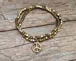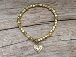 Heart Charm & Anique Copper Elastic Geometric Bracelet